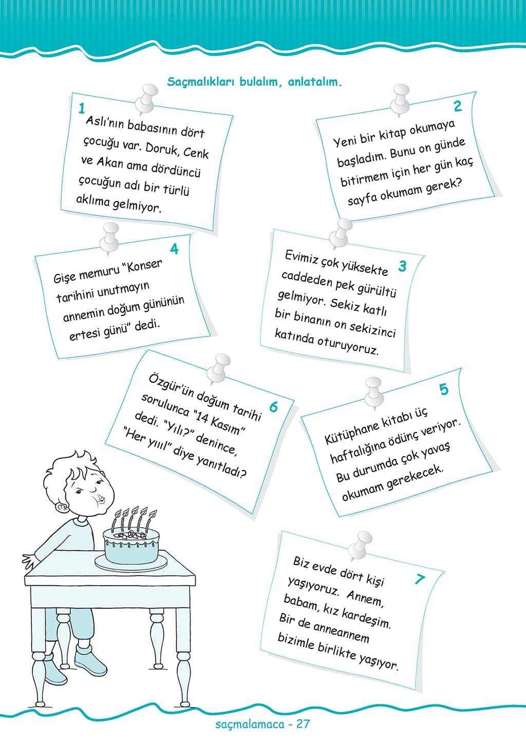 Düşünme Becerileri Dizisi’nin dokuzuncu kitabıdır. Çocuğumuzun başta olgu, kişi ve nesne ilişkilerinde uyuşmayanı, yanlışı, beklenmeyeni, olanaksız olanı ayırt etme becerisini geliştirmek amacıyla hazırlanmıştır. Aynı zamanda genel bilgi, düşünme, problem çözme, akıl yürütme, ilişki kurma gibi uslamlama ve dil becerilerini de geliştirecektir. Sorularla, sohbetle yapıldığında oldukça neşeli, eğlenceli bir şekilde uygulanacak keyifli bir eğitim gereci olarak tasarlanmıştır.