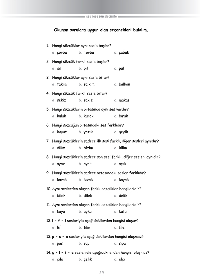 İlköğretim başlangıcından itibaren kullanılabilir. Ayrıca daha büyük olup bu konularda çeşitli güçlükler yaşayanlar için de yararlı olacaktır. Pek çok bilişsel alanı da geliştirecek nitelikte olan bu kitap, normal gelişimi güçlendirmenin yanı sıra, söz konusu alanlarda güçlükler yaşayan çocukların ve belki yetişkinlerin de sorunlarının giderilmesine katkı sağlayacaktır.