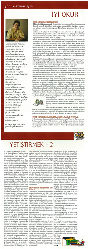 Geçen sayıda “iyi okur yetiştirme”ye baştan başlayalım demiş ve çocuğu kitapla nasıl tanıştıracağımız, ona okurken nelere dikkat edeceğimiz gibi konular üzerinde durmuştuk. Kitap okumaya beşikten başladığımız için okul öncesi dönemden dolayısıyla çocuğun okuma yazma bilmediği yıllardan bahsetmiştik.
