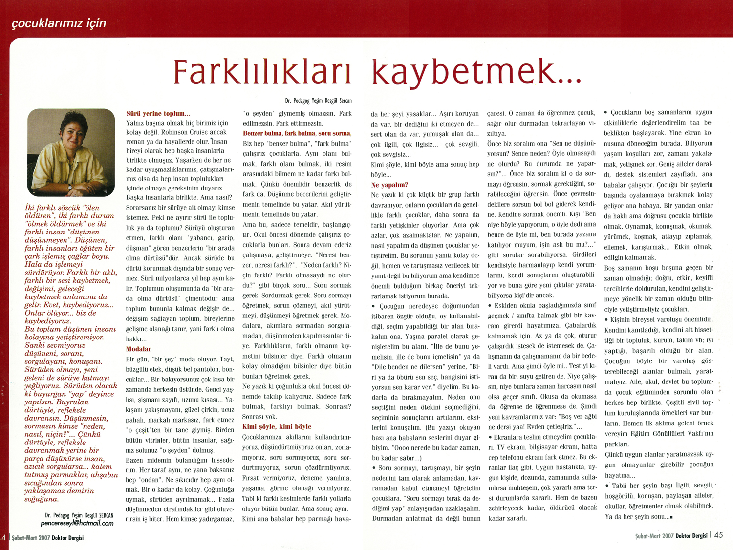 Doktor Dergisi'nin Şubat - Mart 2007 tarihli 37. sayısında yayımlanmıştır.