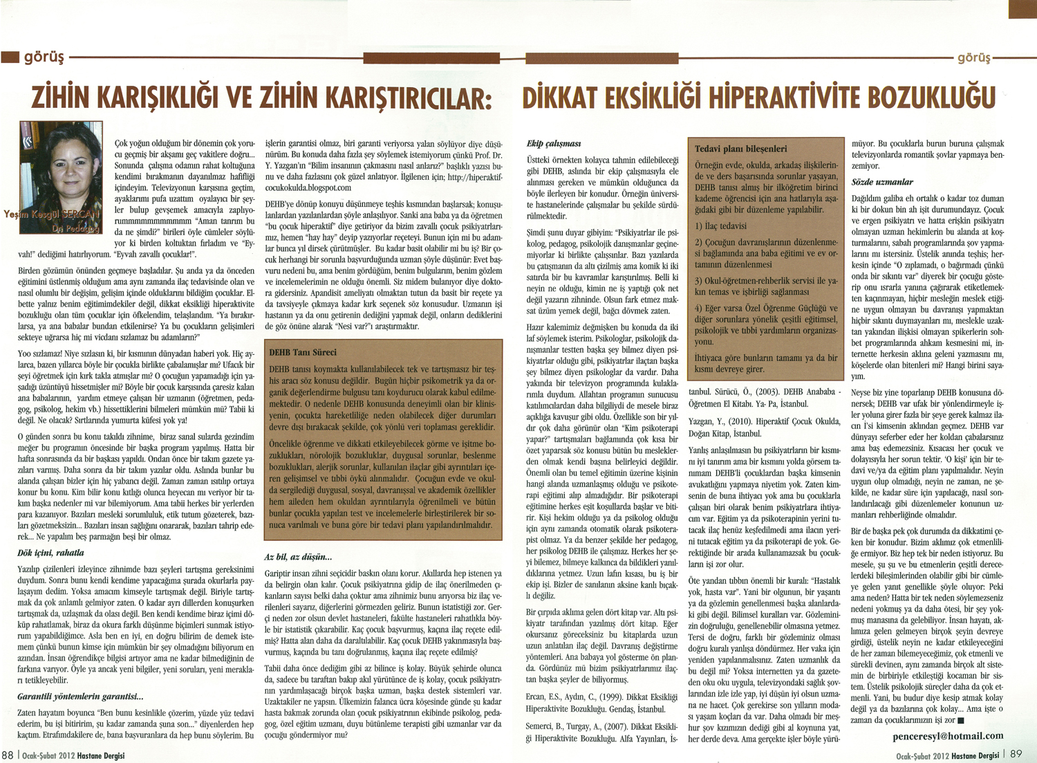 Yazgan, Y., (2010). Hiperaktif Çocuk Okulda, Doğan Kitap, İstanbul.